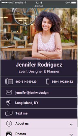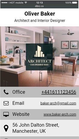 Design your business card in 2 minutes - it's easy, elegant and free. DIBIZ is always in your pocket, never tears and never runs out. Your DIBIZ can be easily updated with our user-friendly dashboard, so you won't need to re-print a business card again.